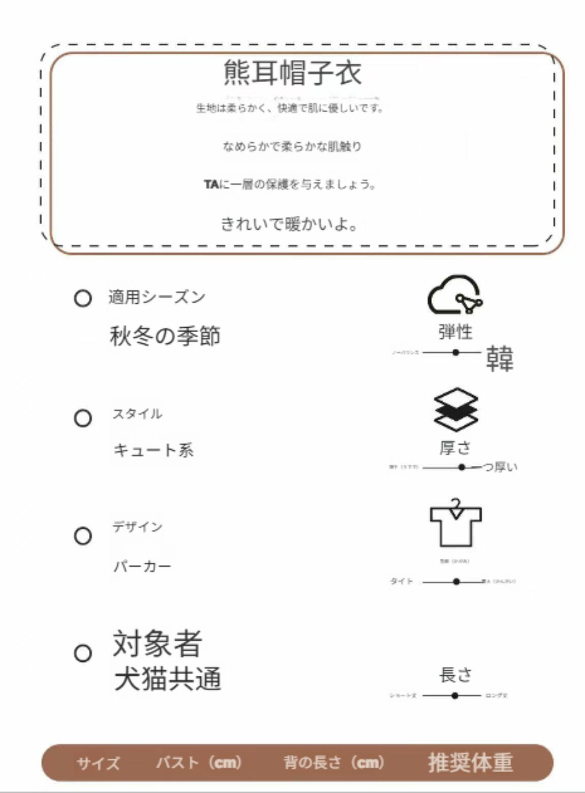 「52.ペット くま耳 ツーレグ ボディスーツ」を手に入れて、この秋冬のお出かけをもっと楽しく、可愛らしく彩ってみませんか?あなたのペットにぴったりのアイテムです!
