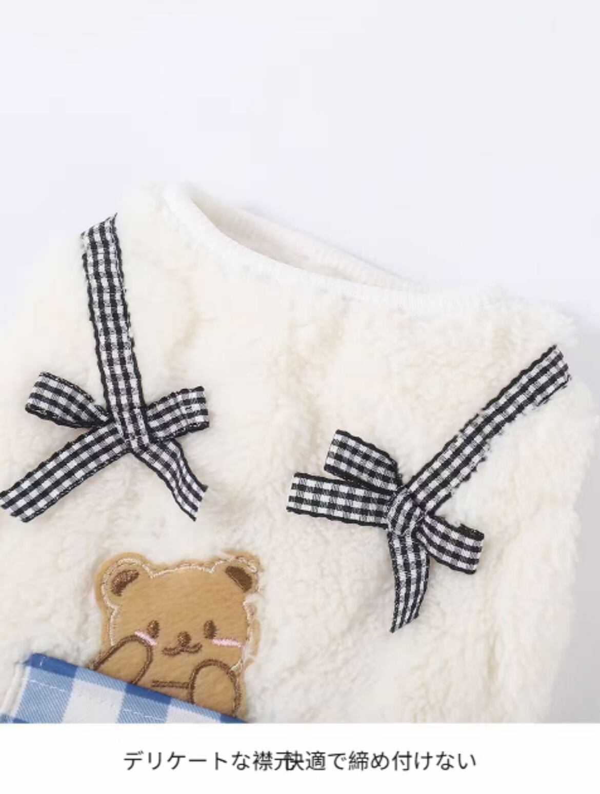 ### 52.ペット くま耳 ツーレグ ボディスーツ フリース裏起毛 防寒 ハーネス対応 秋冬 犬 猫 お出かけ 可愛い