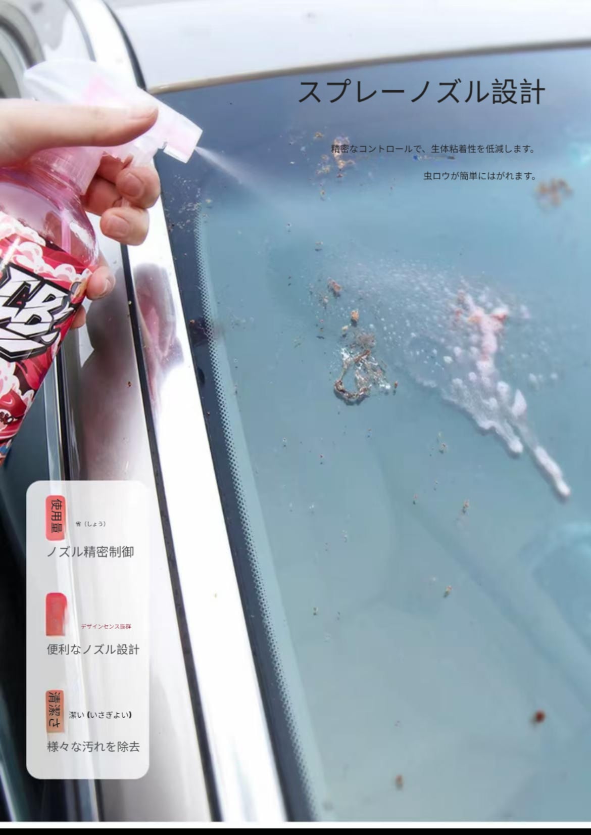 この除去剤は強力な効果を持ち、頑固な虫のコーティングや汚れを短時間で分解します。洗車の手間を大幅に軽減し、美しい愛車を維持するための必需品です!