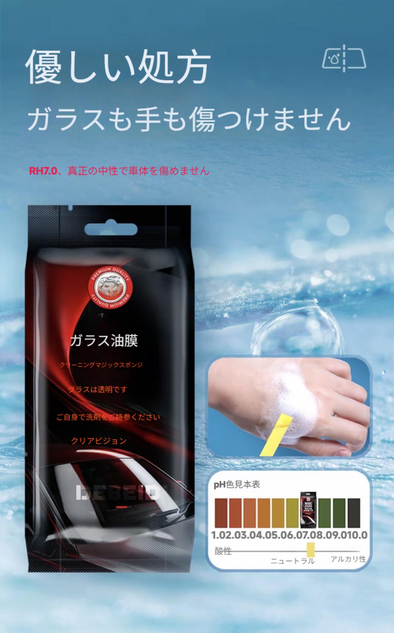 油膜除去マジックワイプは、特殊な成分が配合されており、頑固な油膜や汚れを素早く、スムーズに拭き取ります。視界がクリアになることにより、安全なドライブをサポートします。雨の日も安心して運転できる環境を整えましょう!