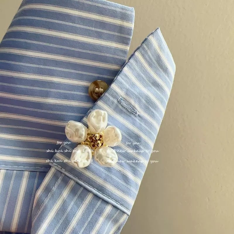 花びら部分にはパール素材を使用し、中心にはさりげなく輝くメタルアクセント。