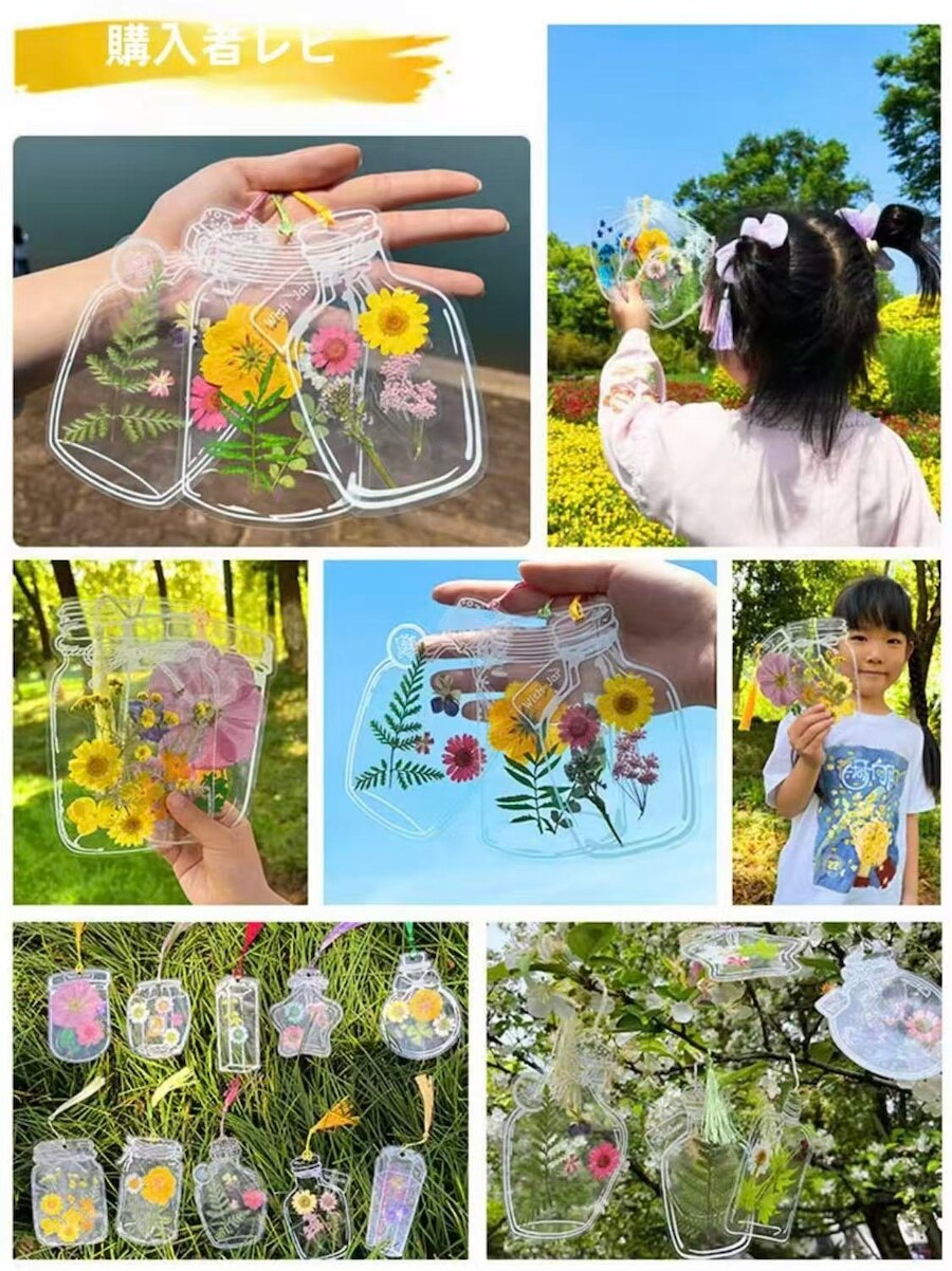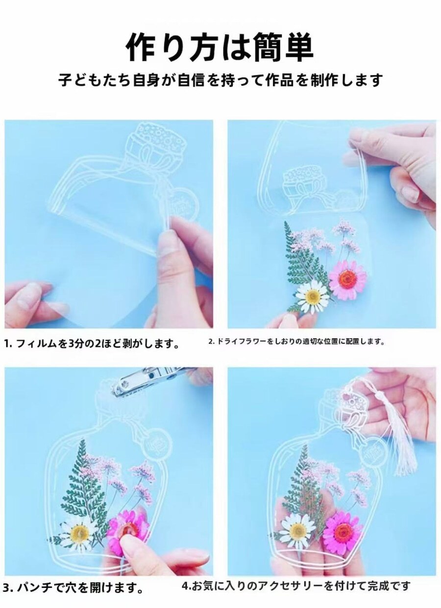 D01.【春の新作】ドライフラワーしおり DIYキット ボトルの中の春 押し花コレクション ラミネートフィルム付き 透明シート 葉っぱ標本 手作り 工作キット プレゼント