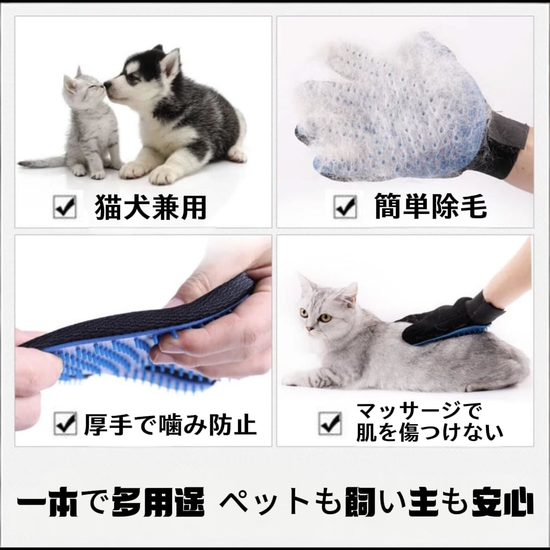 飼い主の手も保護:直接手に毛が付かず、アレルギー対策や衛生面でも優れています。