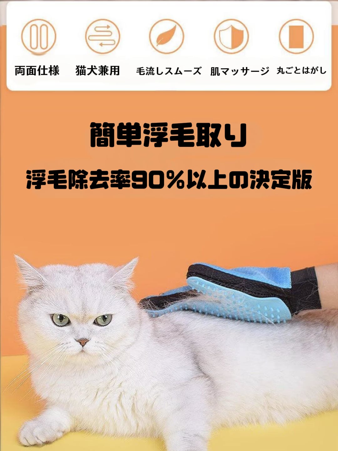 136. 猫 手袋ブラシ 抜け毛処理 マッサージ 多機能 お手入れ簡単