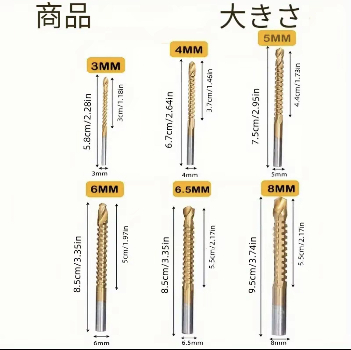 J01.【ラバーラカット&溝切り専用】多機能 木工ドリルビット 6点セット 3-8mm ハイス鋼 超硬 穴あけ+溝彫り+面取り 一本三役 電動ドリル対応 DIY工具