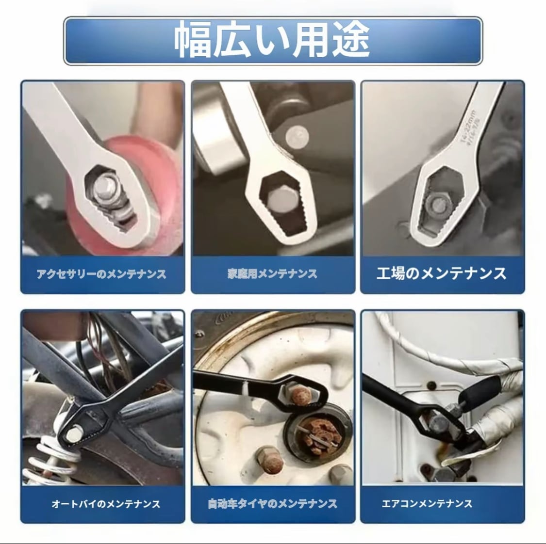家具の組み立て、バイクや自転車の整備、家庭内の修理、DIY作業など様々な場面で使用できます。