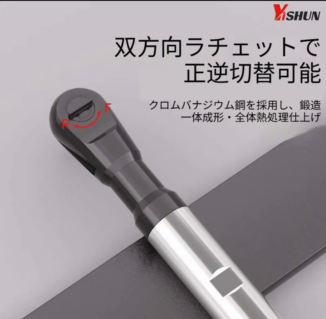 2-in-1ラチェッ卜專用設計で正逆回転切替可能ク口ムバナジウ厶鋼材を一体鍛造、高温熱処理で高硬度·耐久性拔群