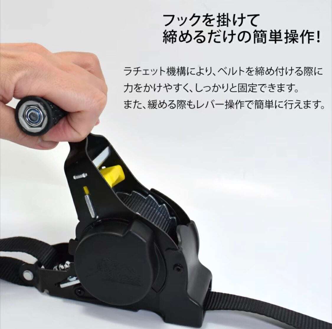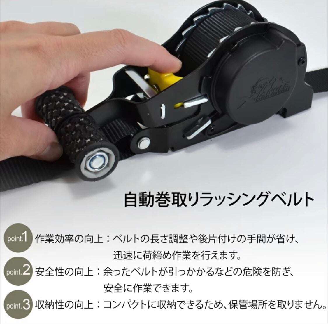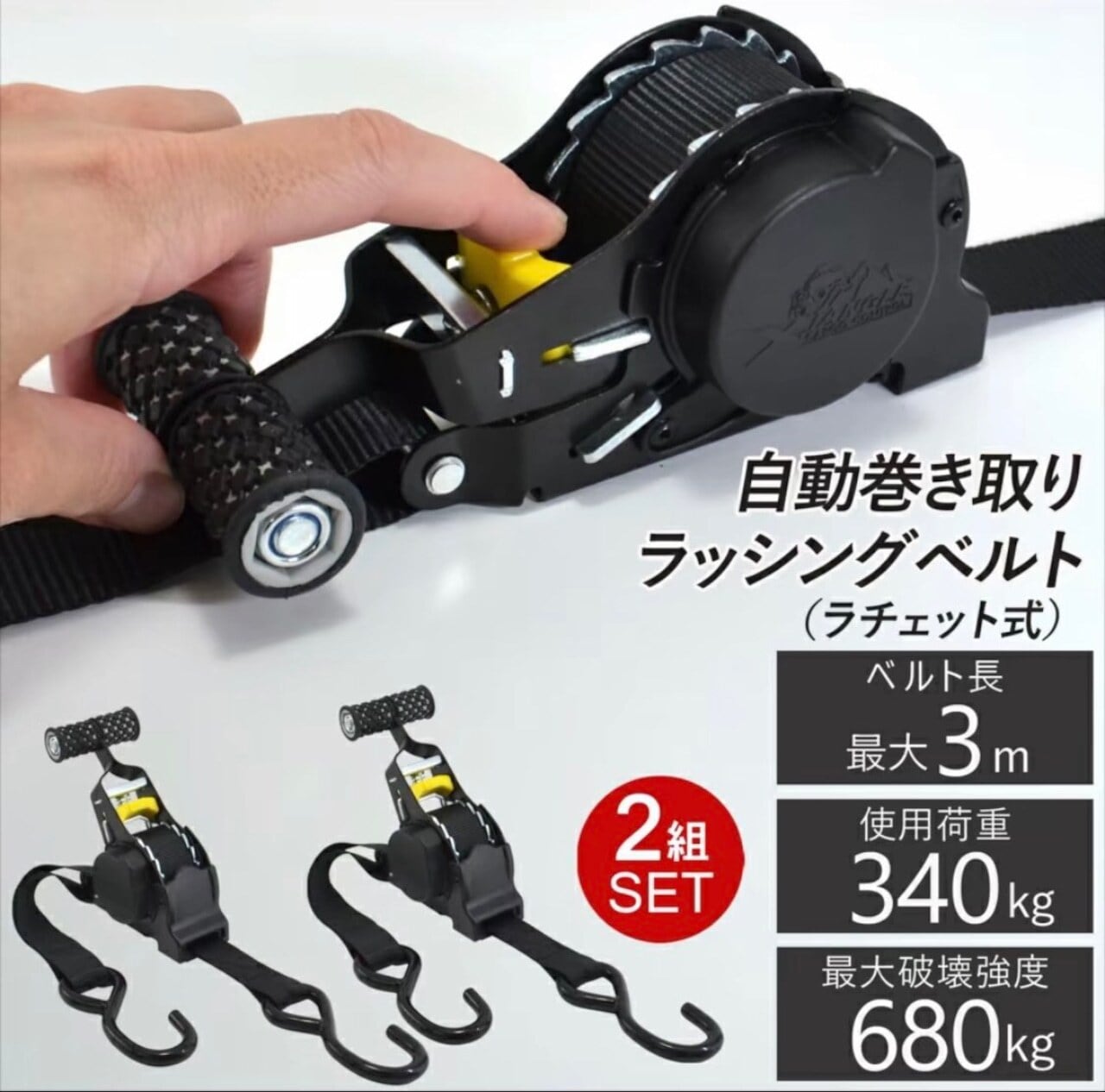 J56.【2組セット】荷締めベルト ラチェット式 自動巻き取り タイダウンベルト 簡単操作 固定ベルト 幅25mm 最大3m 荷崩れ防止 収納便利